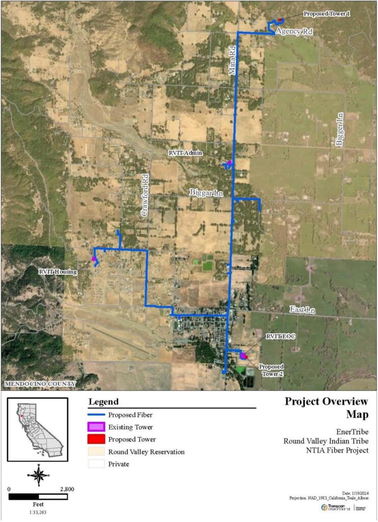 The Round Valley Indian Tribes (RVIT) received grant funding for the installation of several broadband projects located within Covelo Valley.